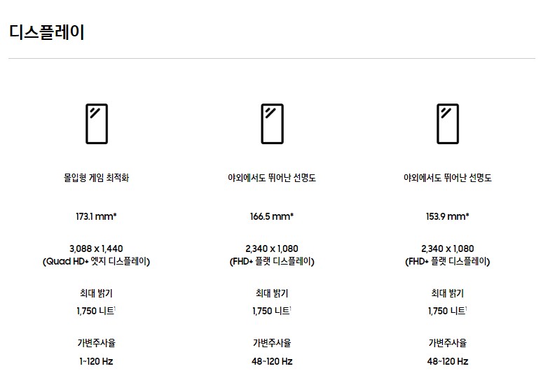 | 스토리지 | S23 (램 8GA) | S23 PLUS (램 8GA) | S23 Ultra (램 12GB) |